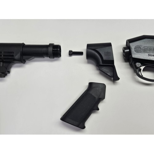 MOA Precision have developed an adapter to allow the use of AR-15 Carbine-type stocks and grips on your Stoeger M or P-series 12ga shotgun! Still allows the use of factory shims for adjustable drop and cast.