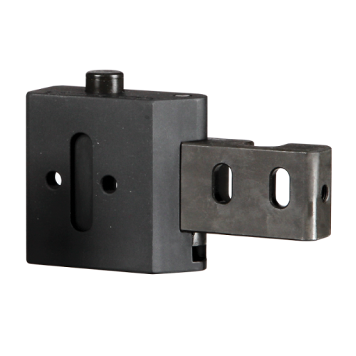 Push Button actuated folding mechanism can be made to fold left or right by inverting the mechanism on the receiver block. Body is machined from 6061 T6 Billet aluminum, arm and key from mild steel. Positive lock in the open and closed position. The FSM-PB is manufactured with and without the Boss. The Boss is the raised (oblong shaped) portion on the Arm (small side). 5.5oz